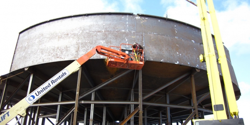 Knocked down piece small tanks are supplied as pre-cut and roll formed plate components that are fit and welded in the field. These tanks require the most amount of site work.